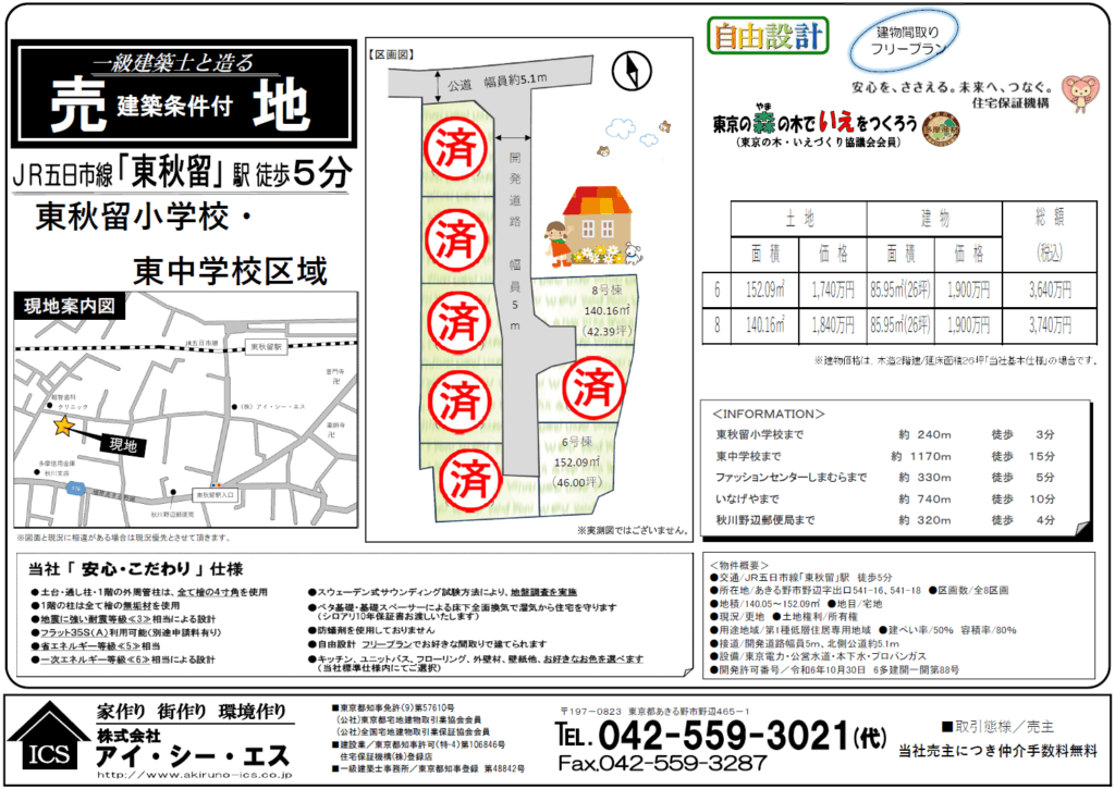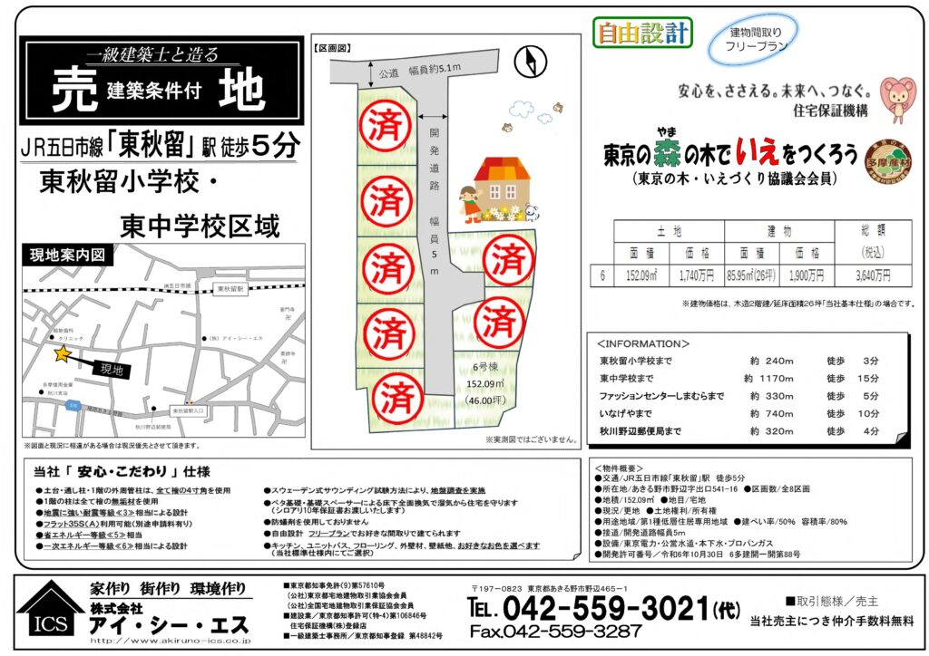 | 所在地 | 東京都あきる野市 野辺8区画条件付売地 |