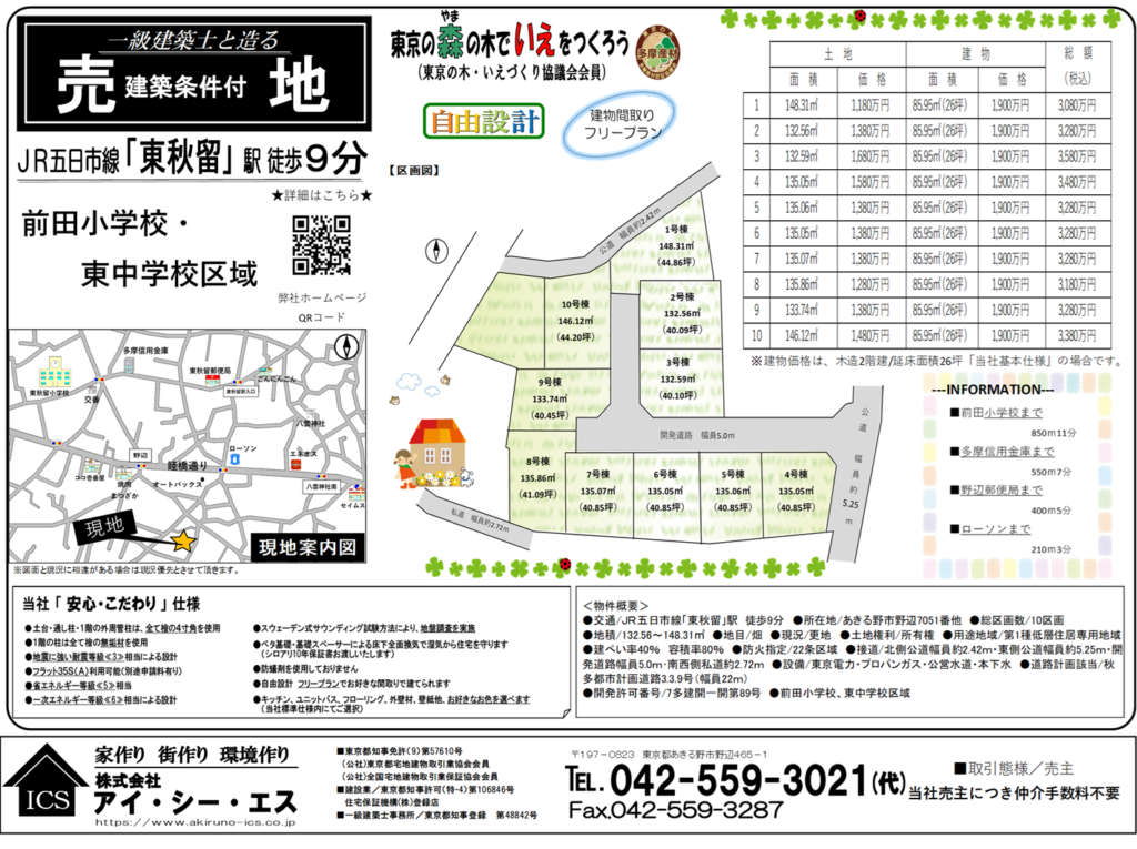 | 所在地 | 東京都あきる野市野辺 野辺10区画条件付き売地 |